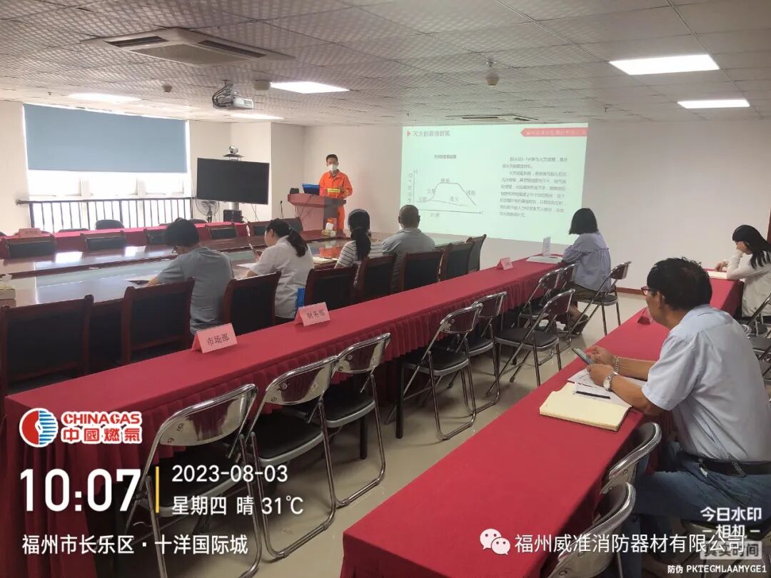 首先,在會議室,給大家詳細介紹福州威準消防器材有限公司,以及我司的主打產品之一——“威準消防彈”。給大家普及火災的基本常識的同時,著重給大家講解威準消防彈的使用及注意事項。