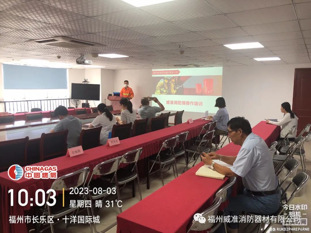 8月3日,天氣晴朗!坐標:福州市長樂區安然燃氣有限公司。我司工作人員應邀給安然公司的主管及安全負責人進行威準消防彈的操作培訓。